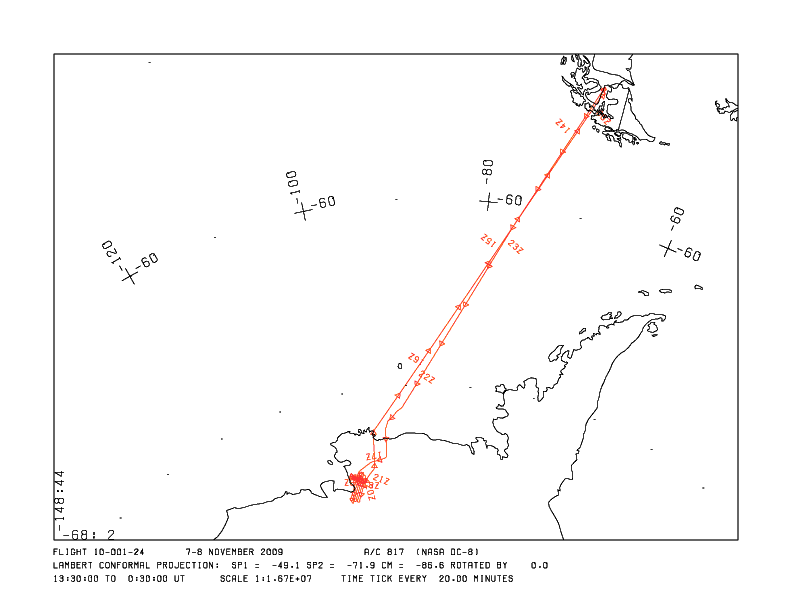 Flight: 10-001-24 Date: 7 November 2009 Location: Antarctica Mission: Pine Island Glacier 3 Campaign: Operation IceBridge 2009 Antarctica Principal Investigators: NASA Headquarters Aircraft: NASA 817 DC-8 (Armstrong Flight Research Center) Additional Sensors: ATM, AirGrav, AVOCET/DACOM/WAS, DLH, KU/Snow Radars, LVIS, MCoRDS |