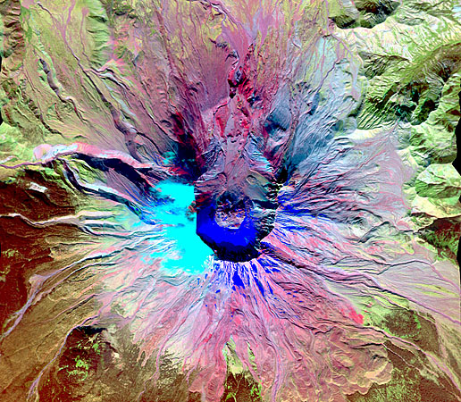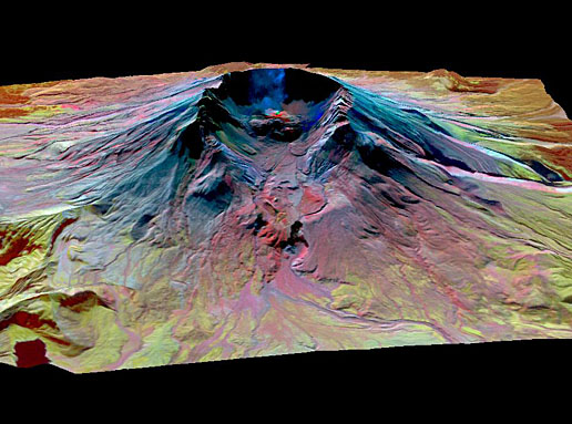 - A mosaic of several flight lines showing the diverse mineralogy of the still-active volcano in southern Washington.