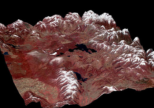 - High altitude 3D MASTER image using a combination of thermal and visible wavelengths to highlight differences in the surrounding soil layers.